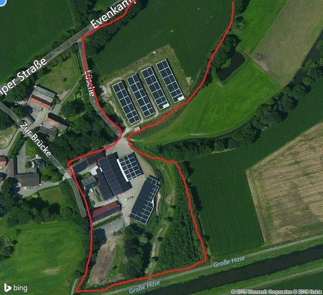 Der Sonnenhof im Landkreis Cloppenburg, idyllisch im malerischen Ortsteil Dünenkamp der Stadt Löningen gelegen, direkt an der Hase, steht zum Verkauf. Die eingezäunte Hoffläche hat eine Größe von ca. 4,5ha.Dieses beeindruckende Anwesen umfasst eine überdachte Fläche von über 1.000 m², auf der sich Solarpaneele mit einer Leistung von ca. 800 kWp befinden. (Achtung! Die PV_Anlage steht optional zum Kauf zur Verfügung) Die Flächen bestehen aus einem Wohngebäude, Hallen sowie offenen Maschinen- und Hagelschutzhallen.