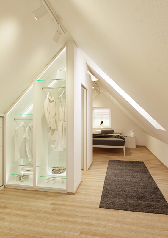 Im Obergeschoss sind auch alternative Raumkonzepte mit einem großen Zimmer oder 2 Schlafzimmern möglich.