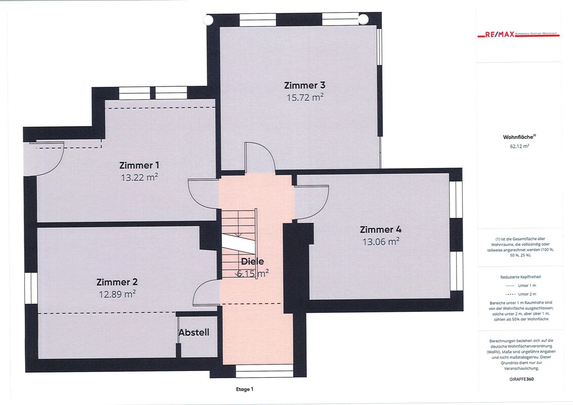 Gesamte Wohnfläche Dachgeschoss: 62, 12 m²