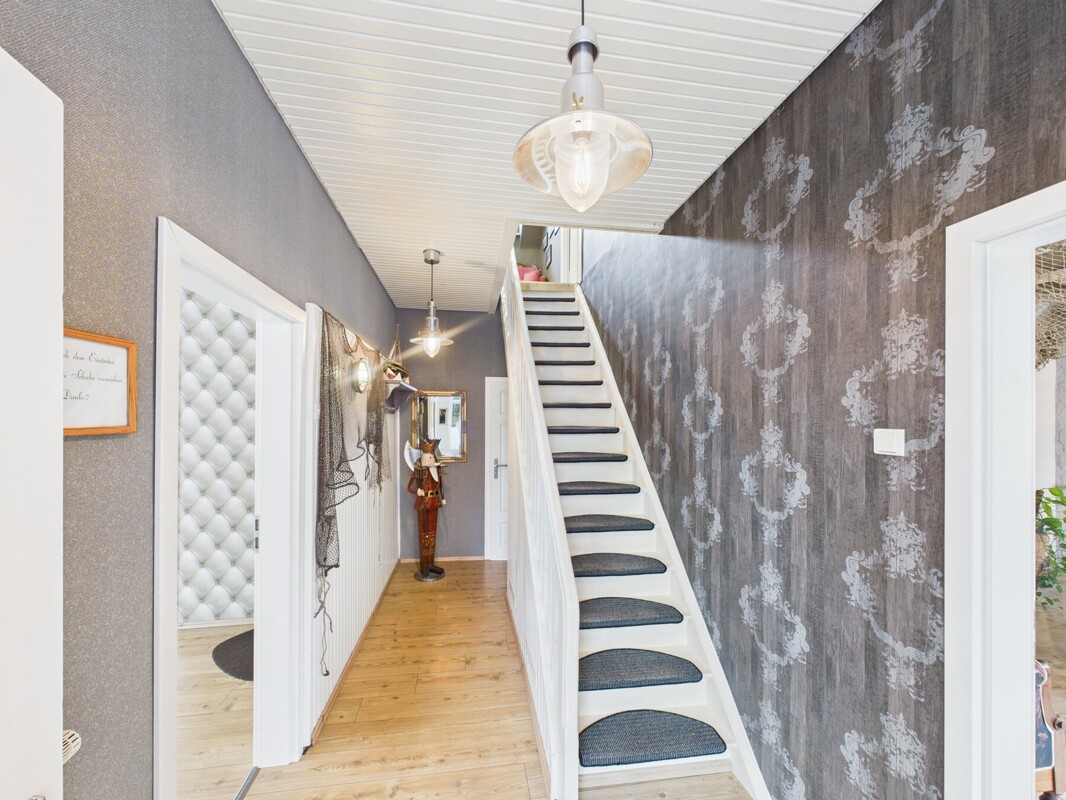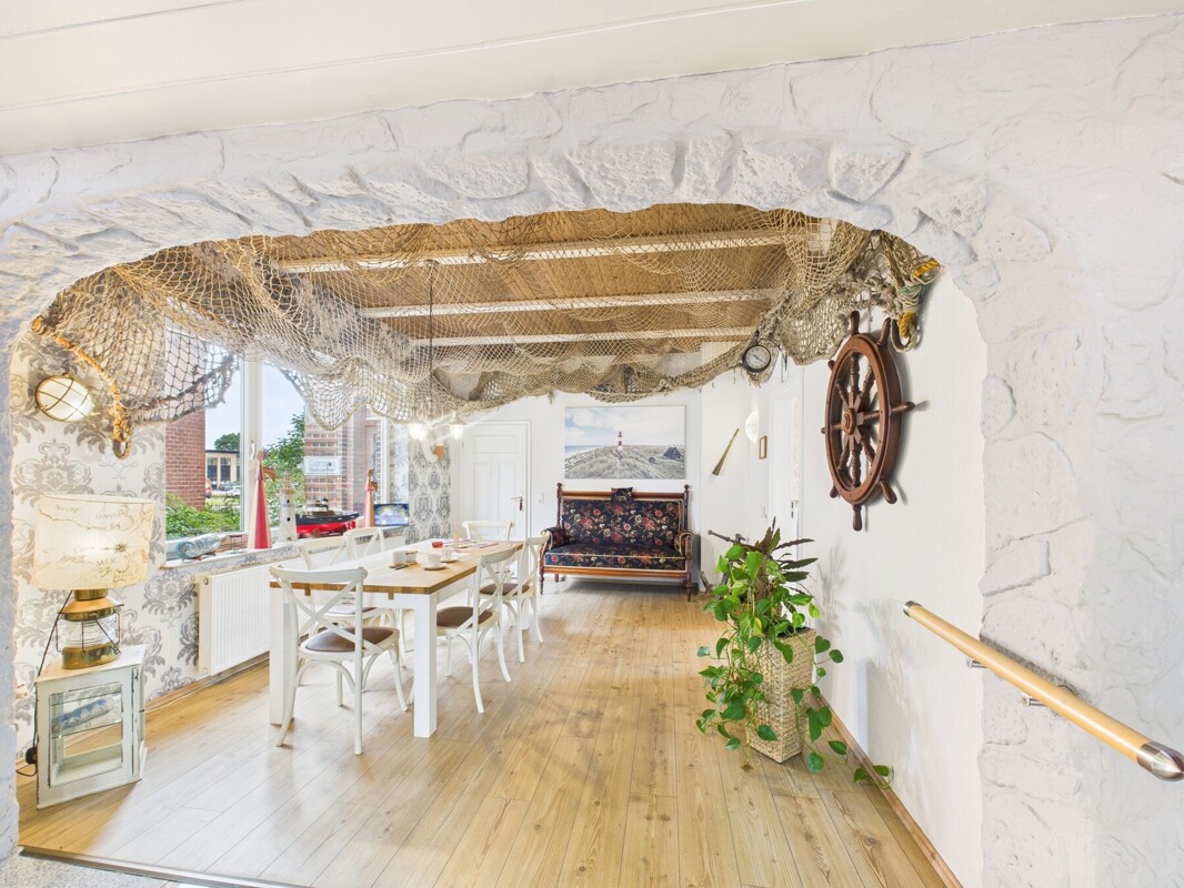 Das rustikale "Alte Kapitänshaus" vereint historischen Charakter mit vielseitigen Nutzungsmöglichkeiten. Eine ideale Gelegenheit für Familien, Selbstständige oder Investoren. Ob als reines Wohnhaus, zur geschäftlichen Nutzung oder als Kombination aus beidem, hiermit stehen Ihnen viele Optionen offen.Mit einer Wohnfläche von fast 200 m² und einer Grundstücksgröße von 1.042 m² überzeugt diese Immobilie nicht nur durch ihre Größe, sondern auch durch die perfekte Lage in Kombination mit insgesamt neun Räumen auf zwei Etagen, die Ihrer Kreativität keine Grenzen setzen.
