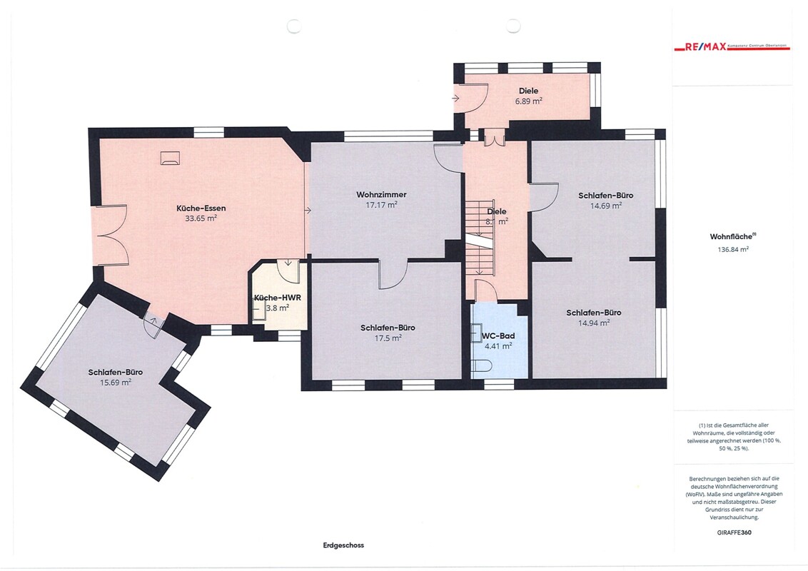 Gesamte Wohnfläche Erdgeschoss: 136,84 m²