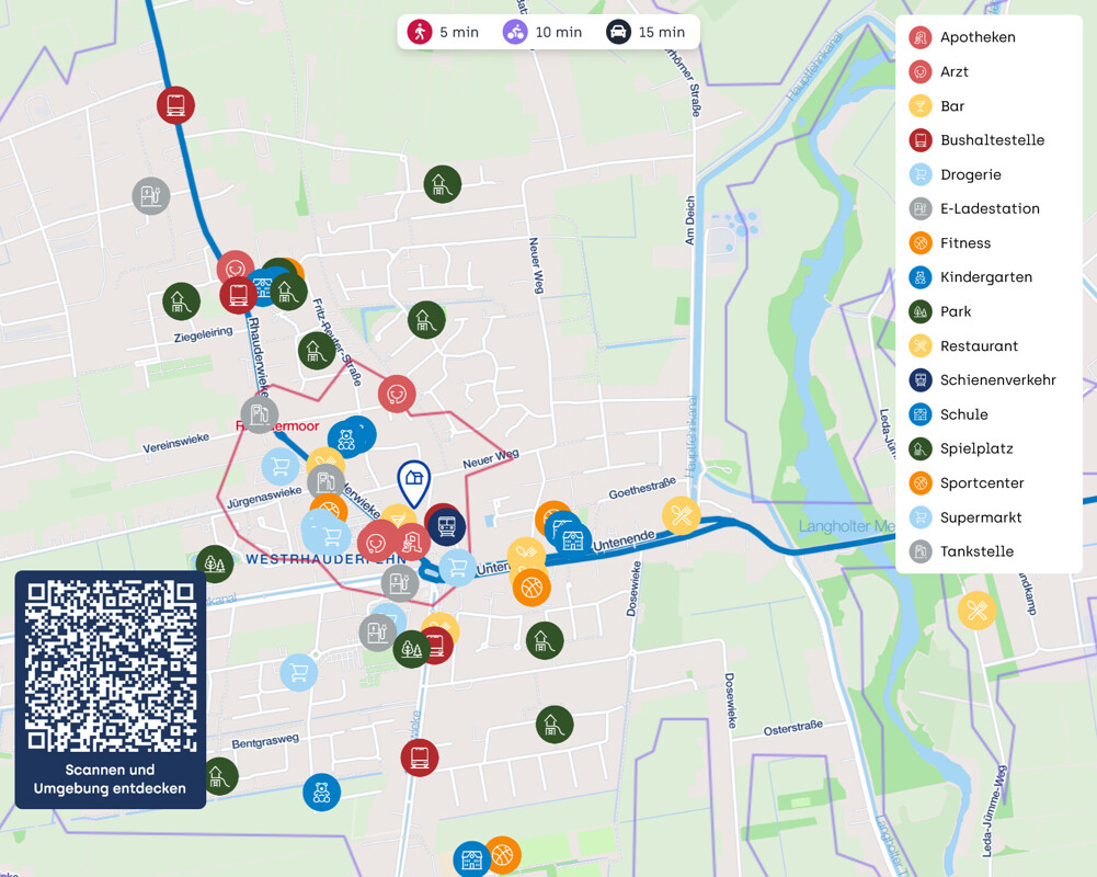 Die Nähe zu medizinischen Einrichtungen, wie Apotheken und Arztpraxen, bietet zusätzliche Sicherheit und Komfort für alle, die in der Immobilie arbeiten, wohnen oder sie besuchen. Auch für sportliche Aktivitäten ist gesorgt, mit Fitnessstudios und Sportplätzen in der Nähe.