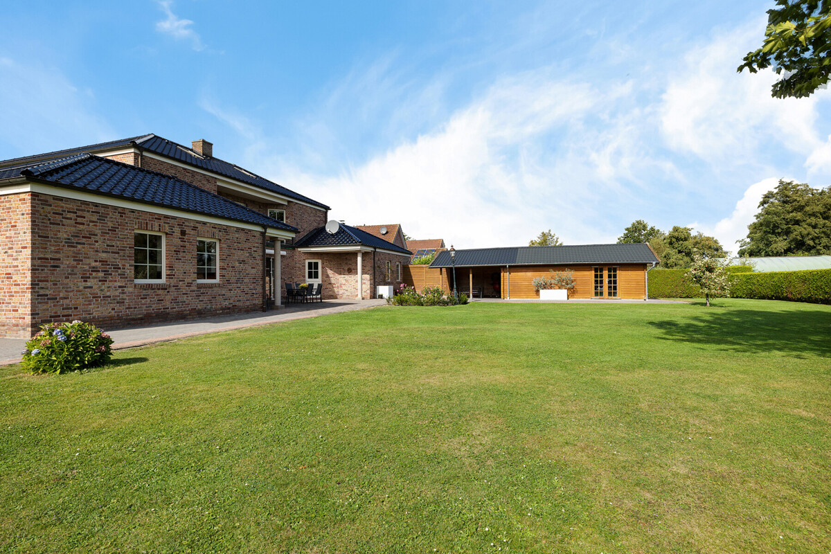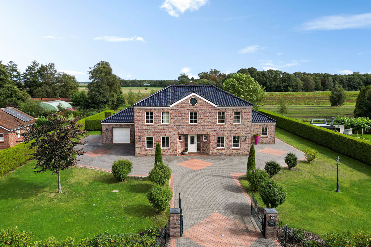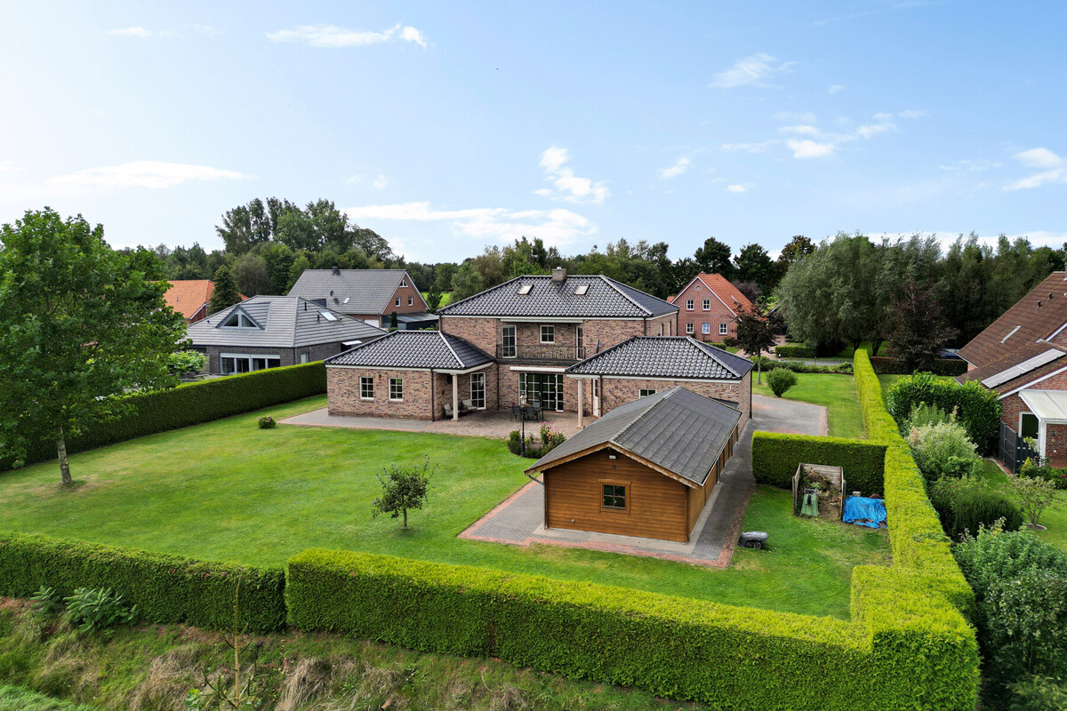Nur wenige Minuten von der niederländischen Grenze entfernt befindet sich diese exklusive Villa in einer ruhigen Wohnlage. Diese absolute Traumlage mit unverbaubaren Blick in den Garten werden Sie so schnell nicht noch einmal wieder finden. Das Anwesen wurde im Jahr 2006 in massiver Bauweise errichtet und 2023 aufwendig modernisiert. Dadurch erfüllt es heute höchste Ansprüche an Komfort und Design und steht einem Neubau in nichts nach.Bereits beim Betreten des Grundstücks spürt man die Großzügigkeit: Über 2.300 m² bieten viel Platz, Ruhe und Privatsphäre. Eine dichte Hecke umrahmt das gesamte Areal, während die Zufahrt mit elektrischem Tor Sicherheit und Eleganz vereint. Mehrere Stellplätze, eine großzügige Garage sowie ein charmantes Gartenhaus mit Überdachung und separatem Holzlager ergänzen das Angebot.