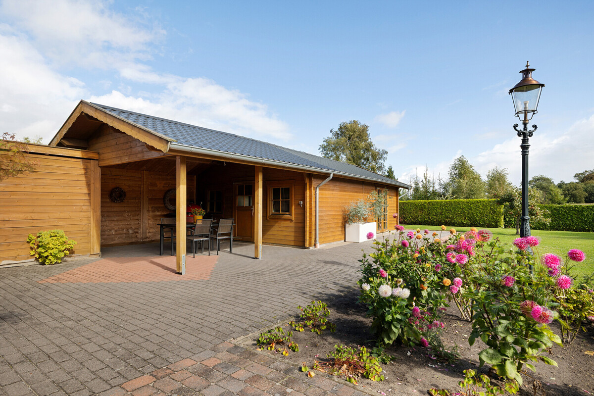 - großes Holzgartenhaus mit überdachten Terrassenteil